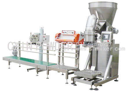 當(dāng)物料裝入口袋后自動打開夾帶器,灌裝部分結(jié)束,下面通過皮帶輸送機一邊輸送,經(jīng)過后面一個縫包機,縫線完成包裝。